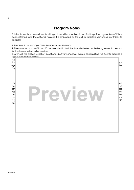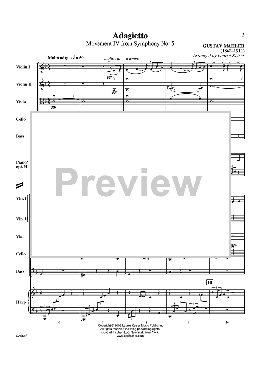 Digital Sheet Music for Adagietto - Score by Gustav Mahler, Lauren Keiser scored for Orchestra; id:408280
