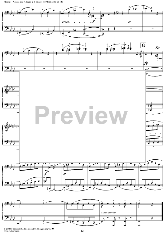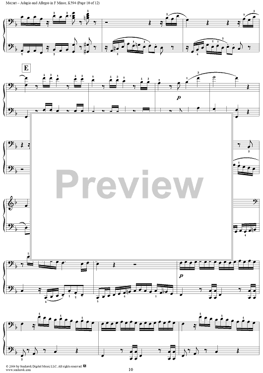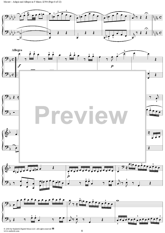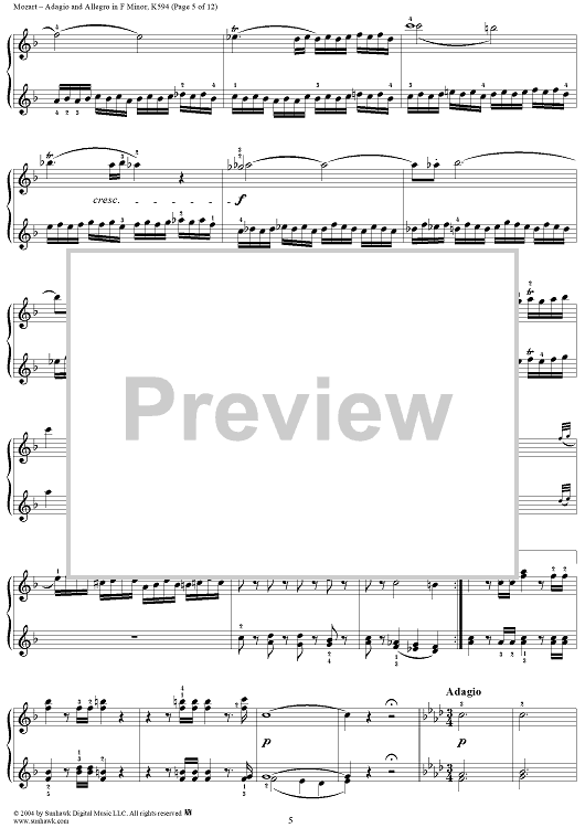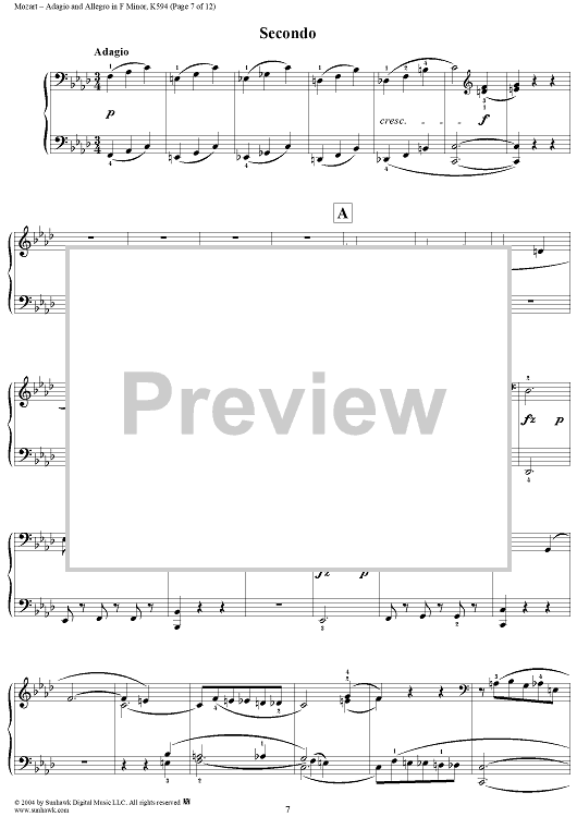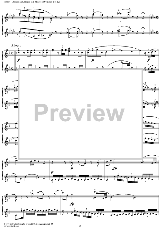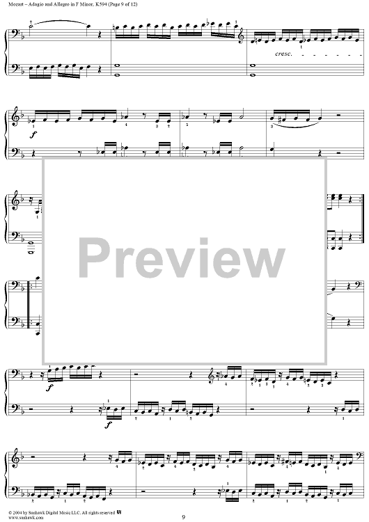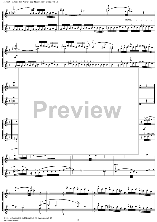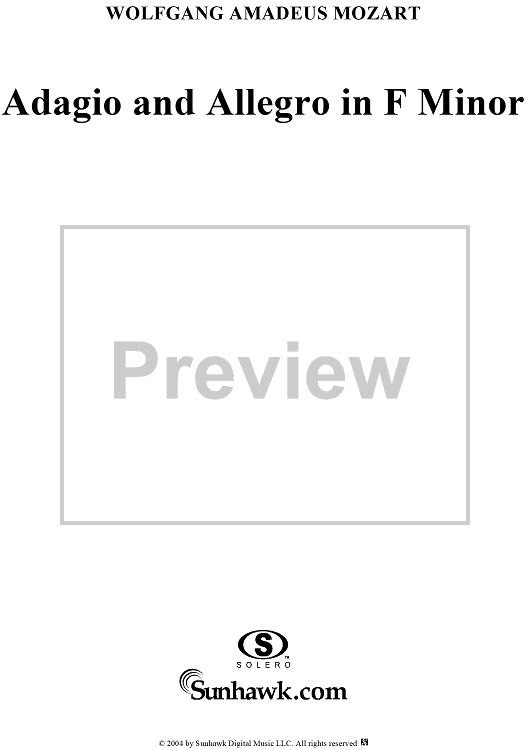 "Adagio and Allegro in F Minor, K594" Sheet Music by Wolfgang Amadeus Mozart