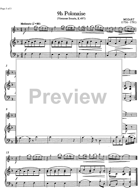 Digital Sheet Music for Adagio and Polonaise (from Viennese Sonata KV 497) - Score by , Wolfgang Amadeus Mozart, Watson Forbes, Alan Frank scored for Flute/Piano; id:349203
