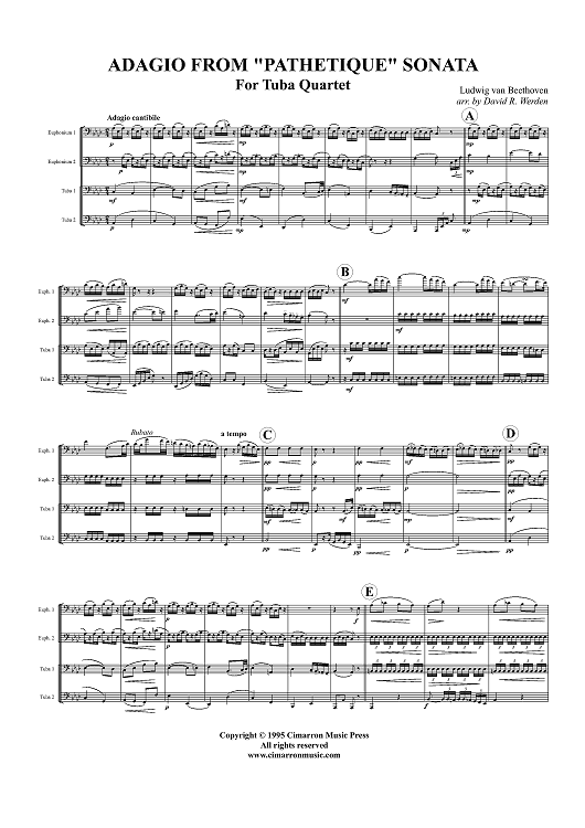 "Adagio from "Pathetique" Sonata - Score" Sheet Music by Ludwig van Beethoven