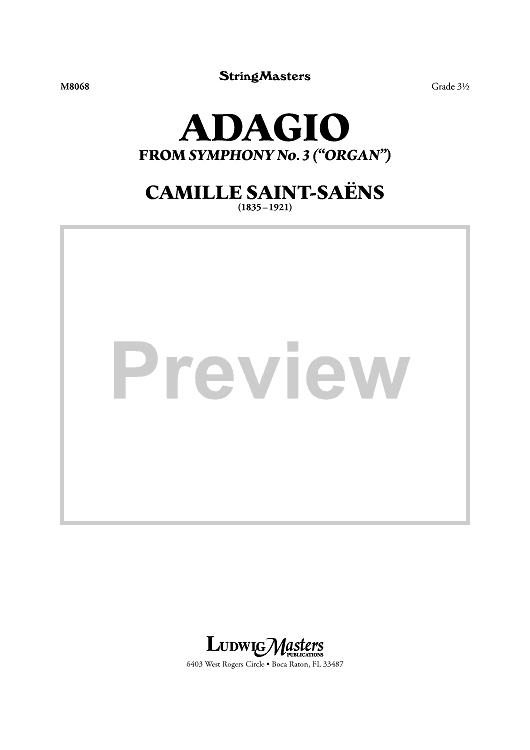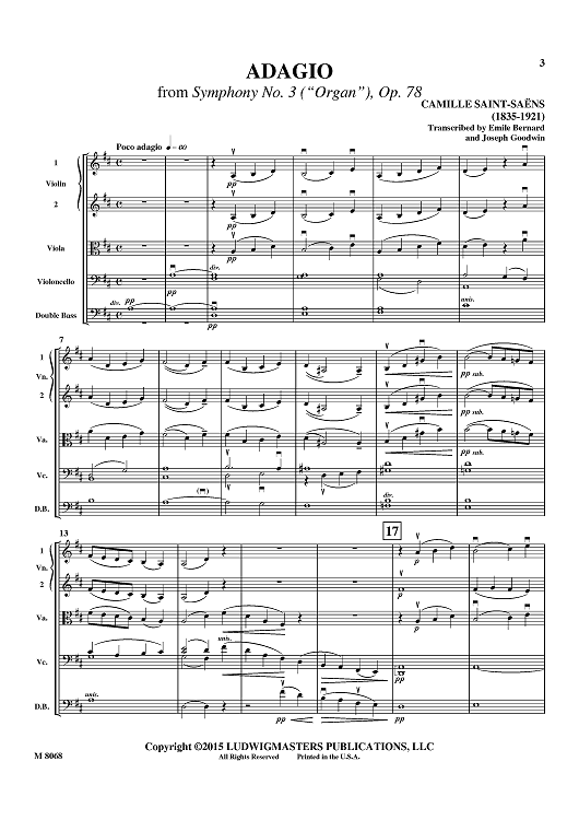 Digital Sheet Music for Adagio from Symphony No. 3 (“Organ”) - Score by Camille Saint-Saëns, Emile Bernard, Joseph Goodwin scored for String Orchestra; id:459788
