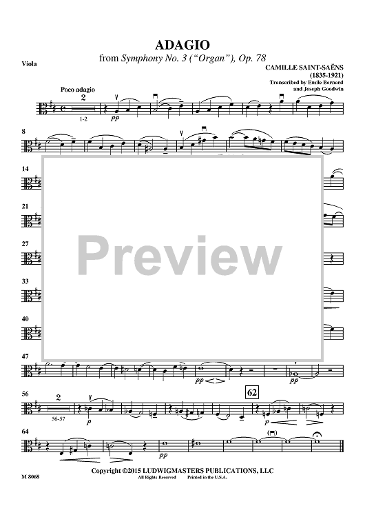 Digital Sheet Music for Adagio from Symphony No. 3 (“Organ”) - Viola by Camille Saint-Saëns, Emile Bernard, Joseph Goodwin scored for String Orchestra; id:459791