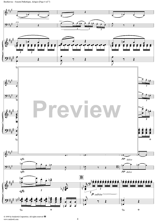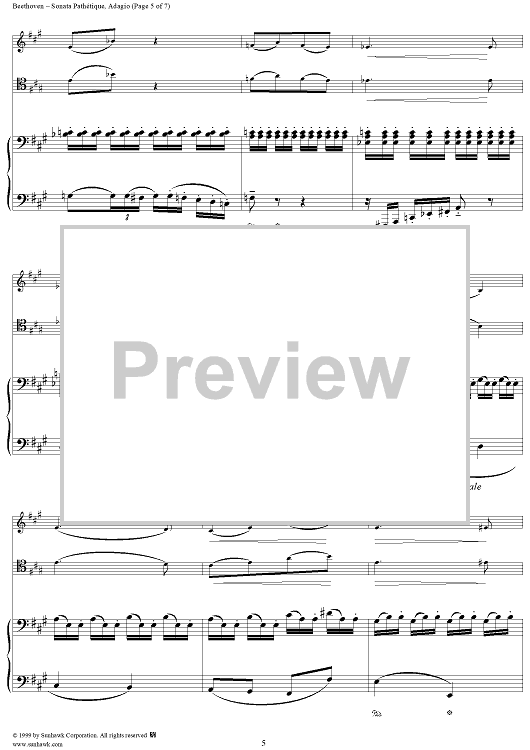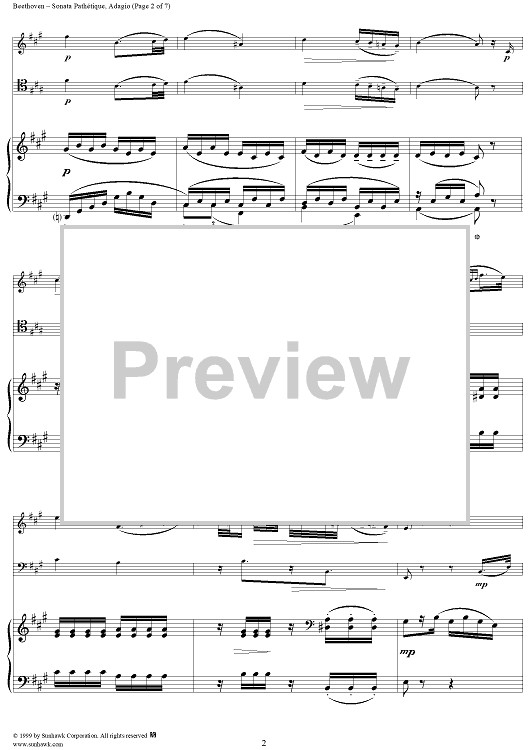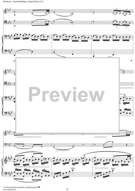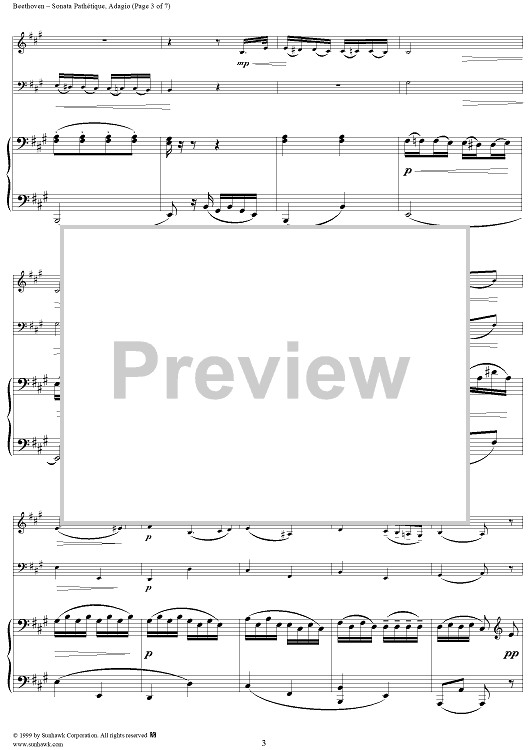 Digital Sheet Music for Adagio - from the Sonata Pathétique Op. 13 by Ludwig van Beethoven scored for Piano Trio; id:275465