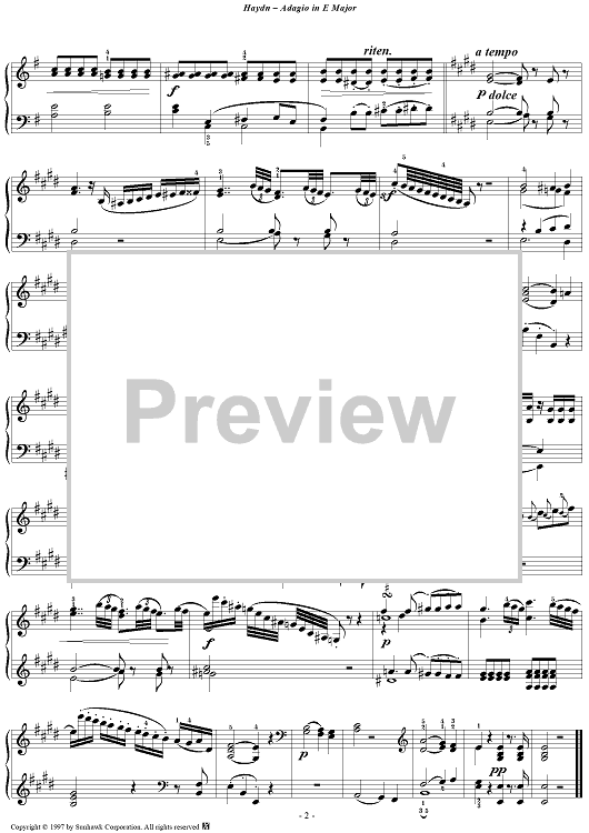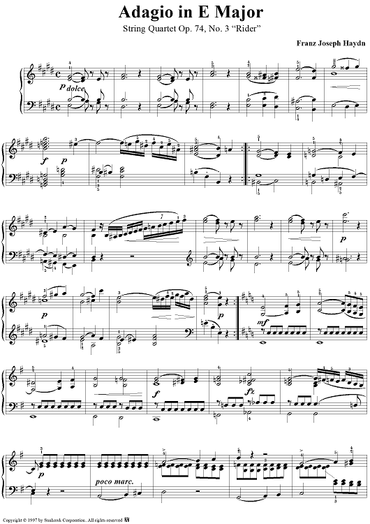 Digital Sheet Music for Adagio in E Major (from Op. 74, No. 3) by Franz Joseph Haydn scored for Piano Solo; id:94644