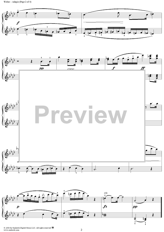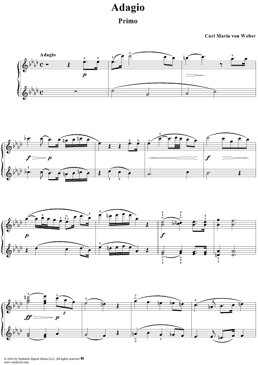 Digital Sheet Music for Adagio by Carl Maria Von Weber scored for 1 Piano, 4 Hands; id:295648