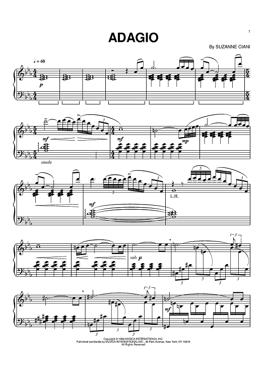Digital Sheet Music for Adagio by Suzanne Ciani scored for Piano; id:396007