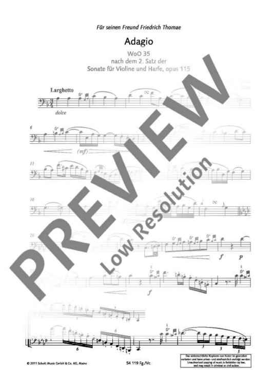 The composer, violinist and educationalist Louis Spohr (1784–1859) caused a sensation as a child already: At the age of 5, he took his first violin lessons and at the age of 15 was employed as chamber musician of the Duke's orchestra. Very soon, his fame as a virtuoso violinist ran ahead of him, and he undertook concert tours throughout Europe. On these trips, he was often accompanied by his first wife, a virtuoso harpist and pianist. For their joint music-making, Spohr wrote a Sonata for violin and harp the adagio of which was rearranged for bassoon and piano. It was followed by arrangements for other melodic instruments, although not by Spohr himself. This is a melodious setting – now cantabile, now passionate – which is worth playing and listening to.