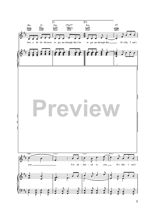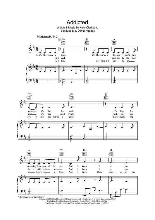 Digital Sheet Music for Addicted by David Hodges, Kelly Clarkson scored for Piano/Vocal/Chords; id:395884