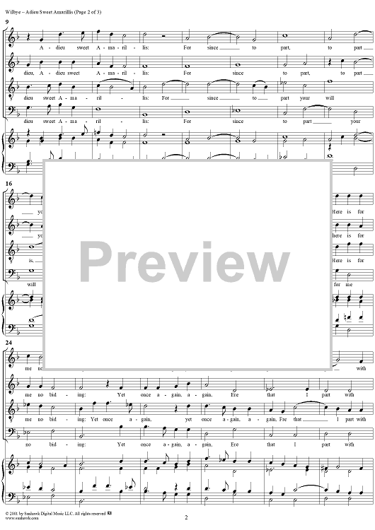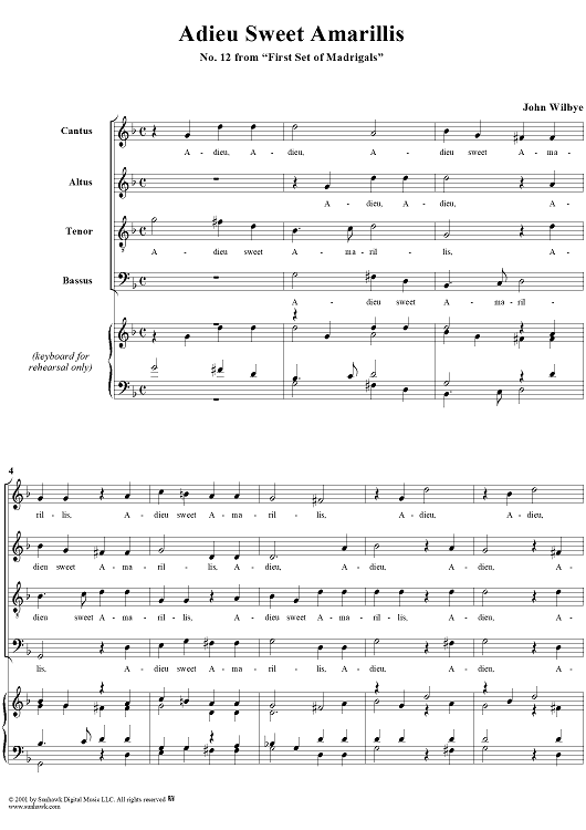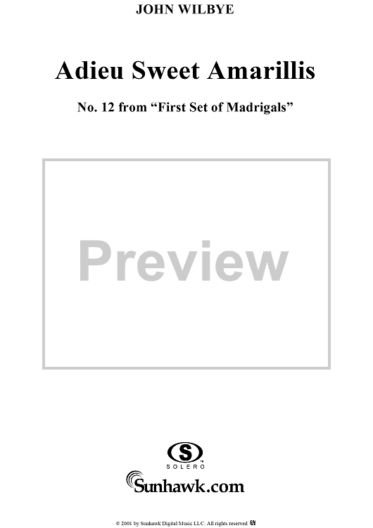 Digital Sheet Music for Adieu Sweet Amarillis by John Wilbye scored for Four-part Mixed Chorus; id:168455