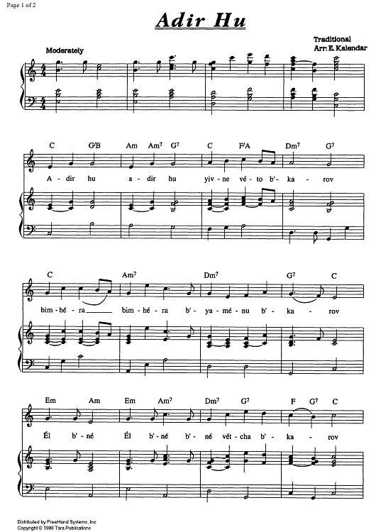 Digital Sheet Music for Adir Hu by , Edward Kalendar, Traditional scored for Voice/Piano; id:343875