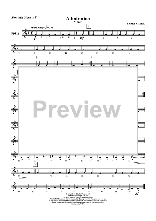 Digital Sheet Music for Admiration - Alternate Horn in F by Larry Clark scored for Concert Band; id:431127