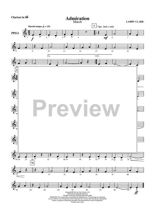 Digital Sheet Music for Admiration - Clarinet in Bb by Larry Clark scored for Concert Band; id:431121