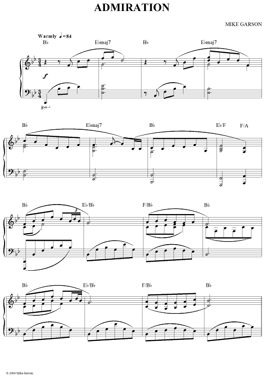 Digital Sheet Music for Admiration by Mike Garson scored for Piano Solo; id:362863