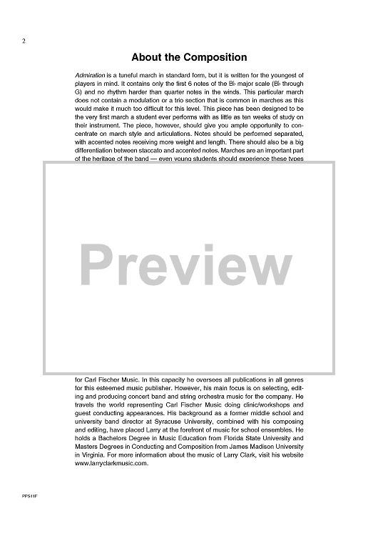 Digital Sheet Music for Admiration - Score by Larry Clark scored for Concert Band; id:431118