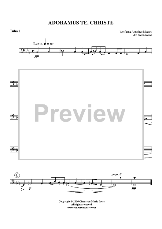 Digital Sheet Music for Adoramus Te, Christe - Tuba 1 by Wolfgang Amadeus Mozart, Mark Nelson scored for Tuba Quartet; id:320683