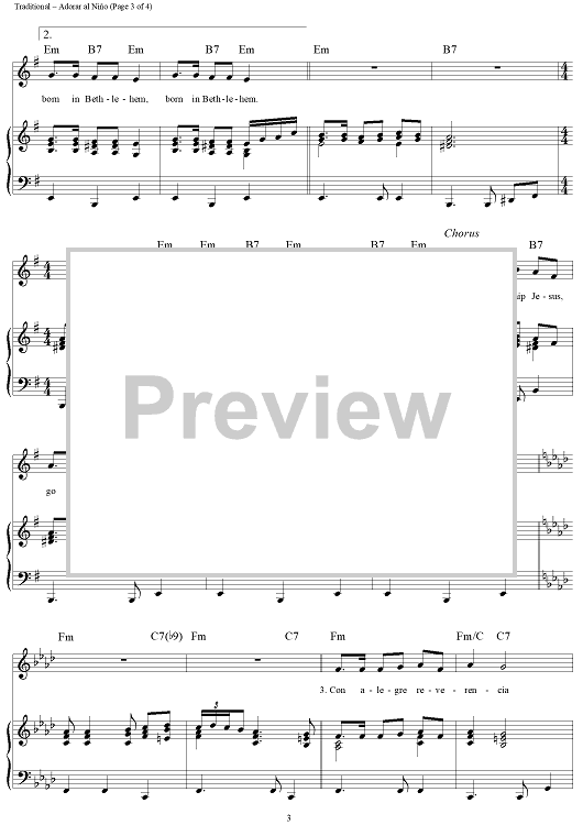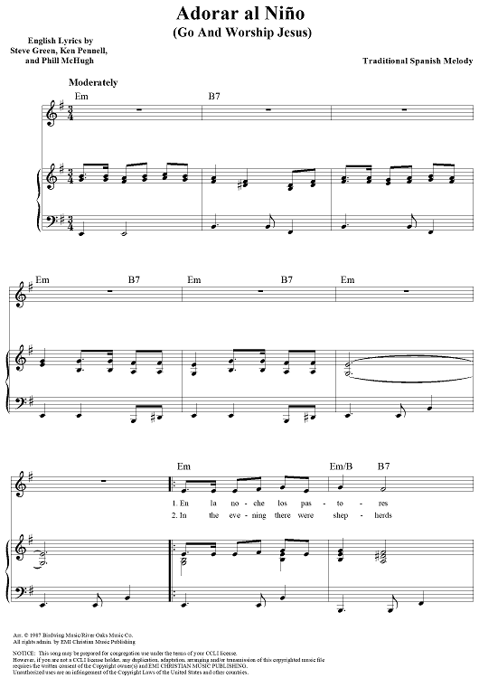 Digital Sheet Music for Adorar al Niño by Steve Green, Phill McHugh, Ken Pennell, Traditional scored for Piano/Vocal/Chords; id:113808