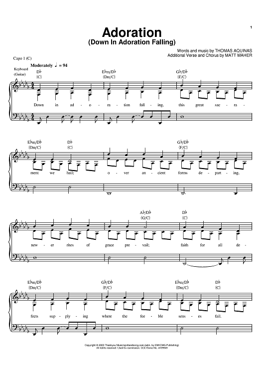 Digital Sheet Music for Adoration by Matt Maher scored for Piano/Vocal/Chords; id:394038