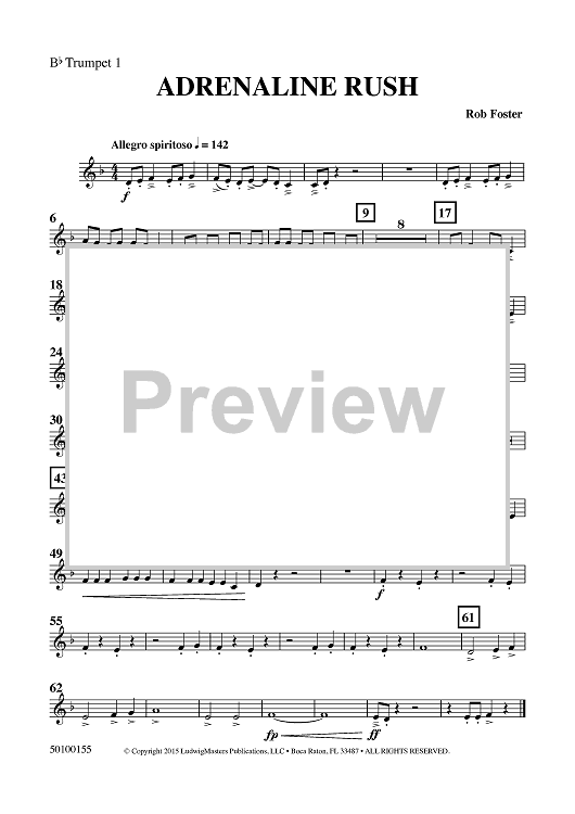 Digital Sheet Music for Adrenaline Rush - Bb Trumpet 1 by Rob Foster scored for Concert Band; id:459138