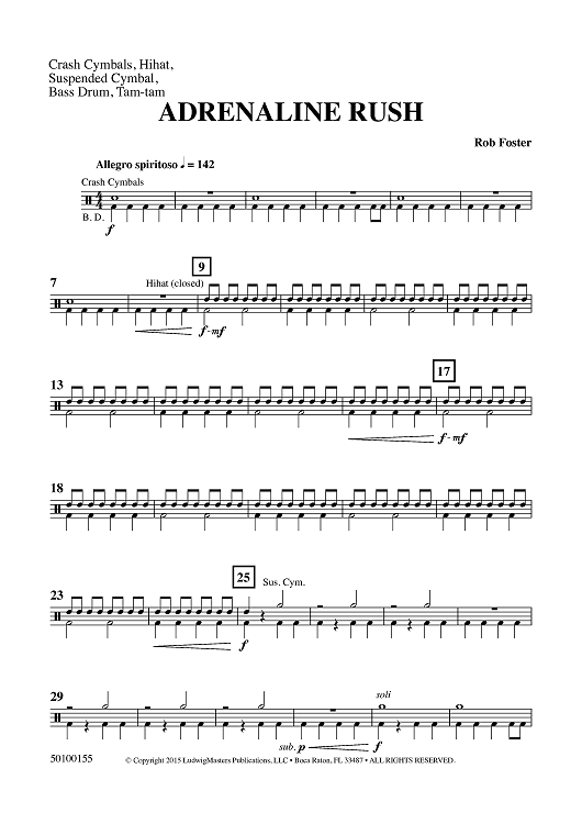 "Adrenaline Rush - Crash Cymbals, Bass Drum" Sheet Music by Rob Foster