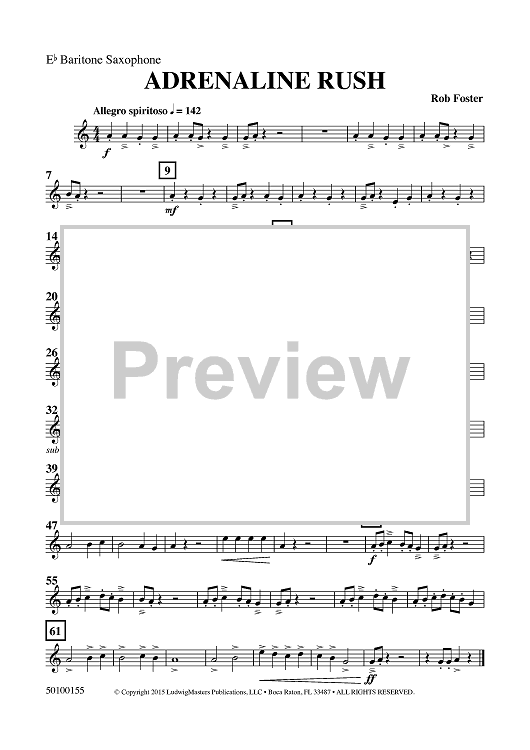 Digital Sheet Music for Adrenaline Rush - Eb Baritone Sax by Rob Foster scored for Concert Band; id:459137