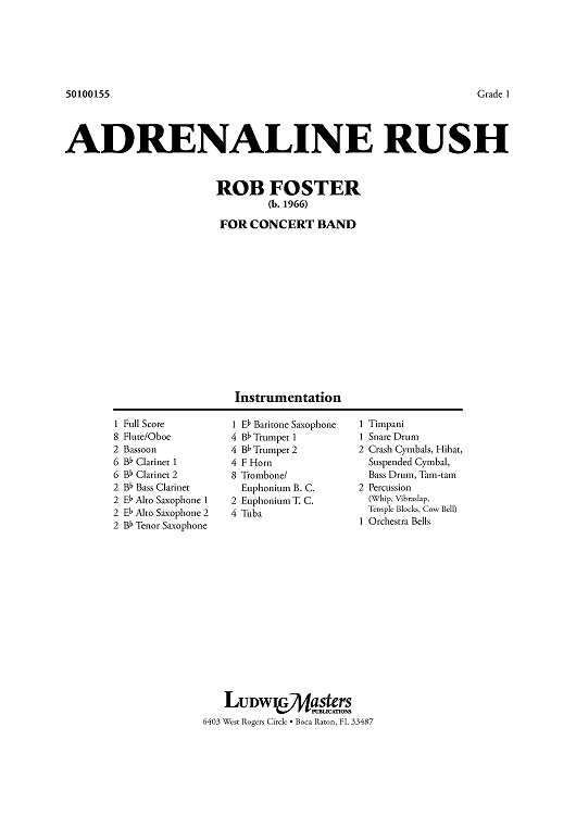 Digital Sheet Music for Adrenaline Rush - Score by Rob Foster scored for Concert Band; id:459128