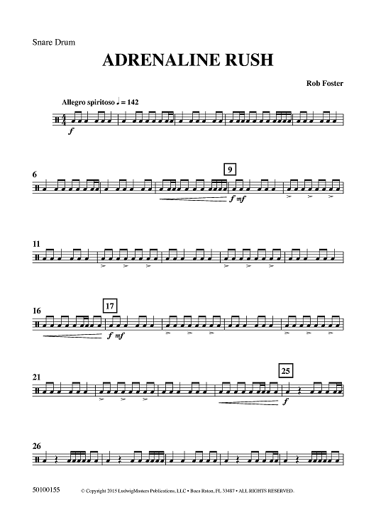 "Adrenaline Rush - Snare Drum" Sheet Music by Rob Foster
