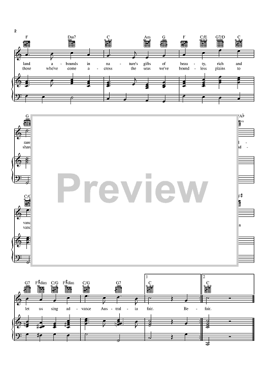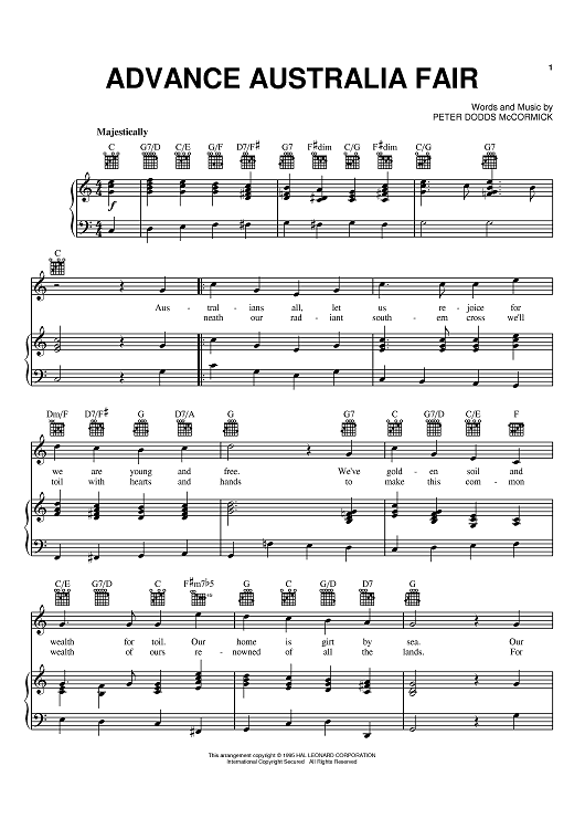 Digital Sheet Music for Advance Australia Fair by Peter Dodds McCormick scored for Piano/Vocal/Chords; id:368235