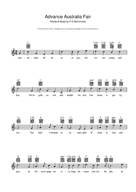 Digital Sheet Music for Advance Australia Fair by Peter McCormick scored for Lead Sheet; id:401668