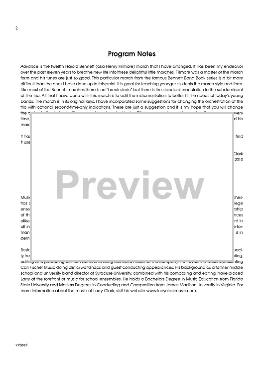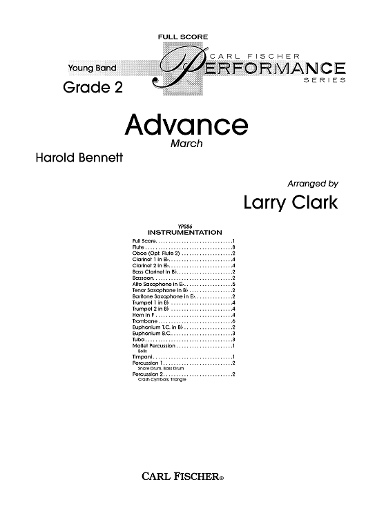 "Advance (March) - Score" Sheet Music by Harold Bennett
