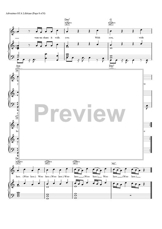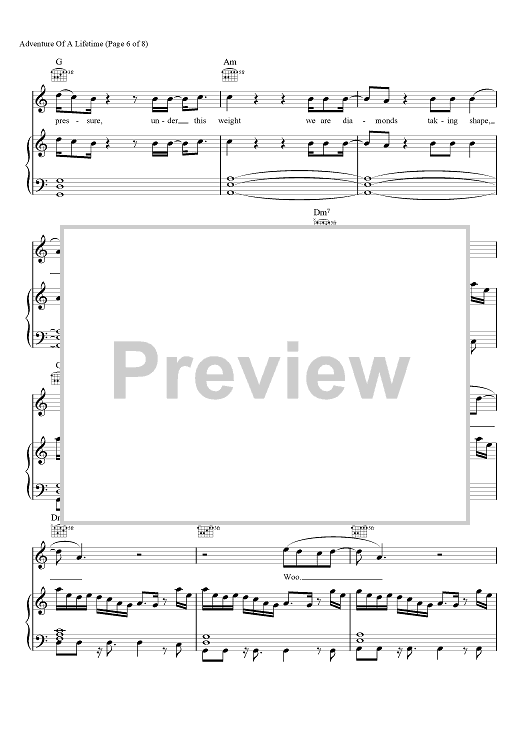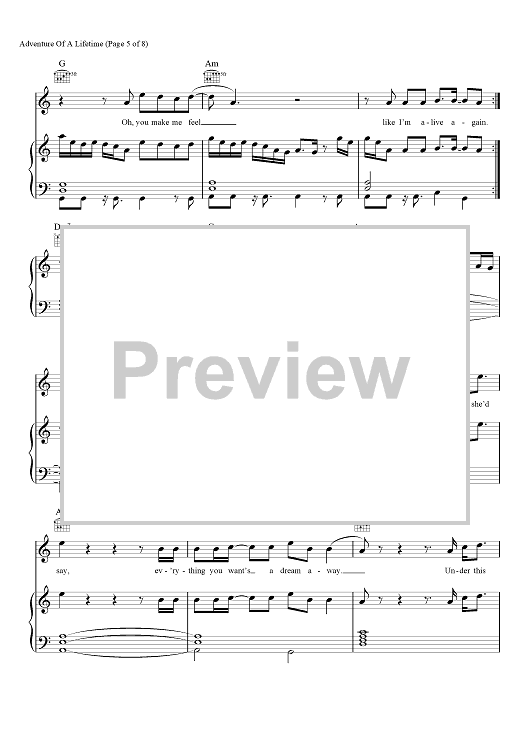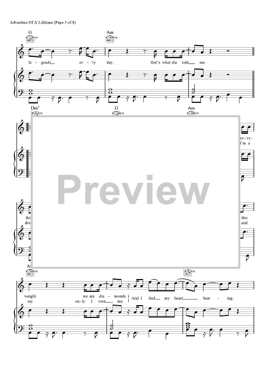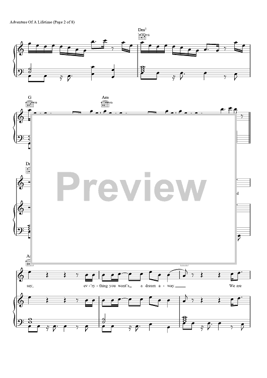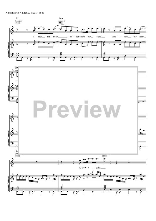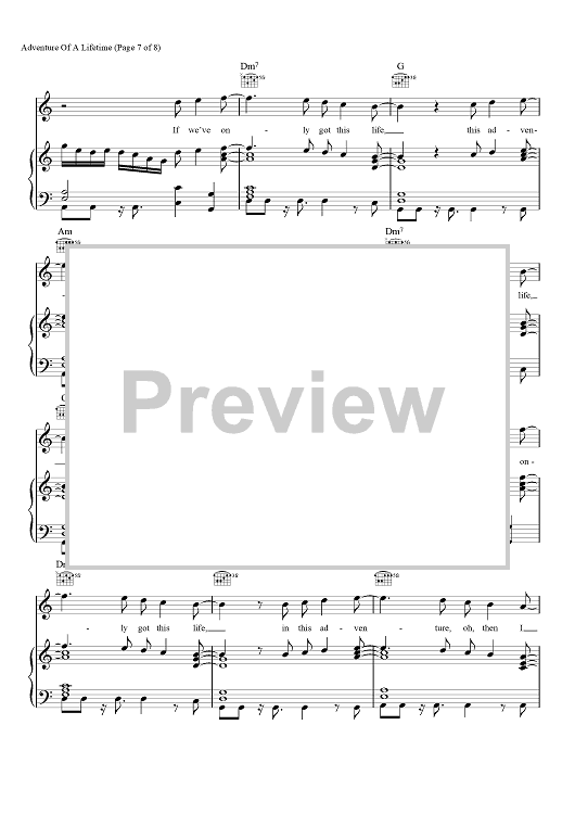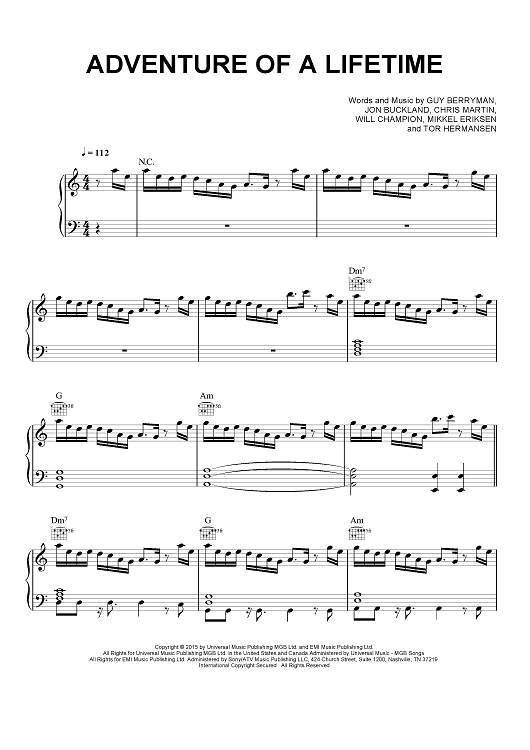 Digital Sheet Music for Adventure of a Lifetime by Chris Martin, Coldplay, Jonny Buckland, Guy Berryman, Tor Hermansen, Mikkel Eriksen scored for Piano/Vocal/Chords; id:457135