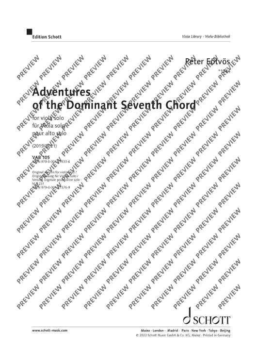 Digital Sheet Music for Adventures of the Dominant Seventh Chord by Peter Eötvös scored for Viola; id:498551