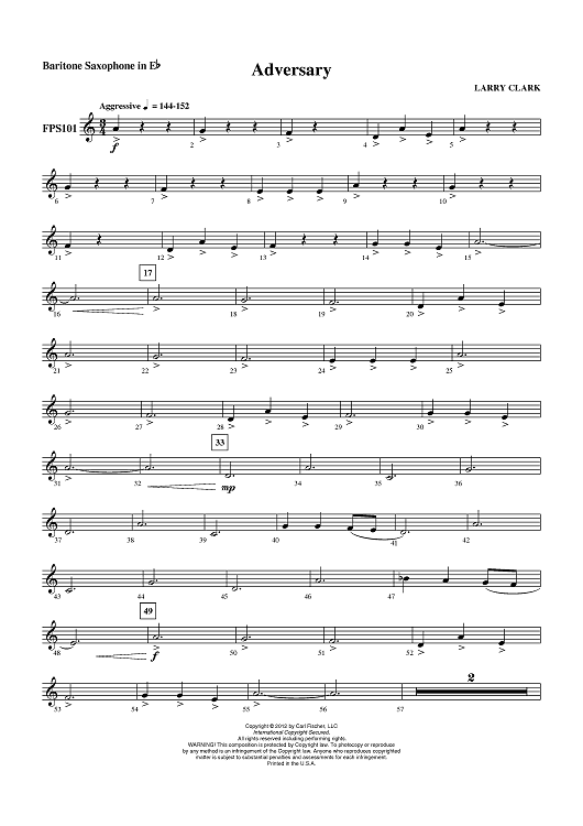 "Adversary - Baritone Sax" Sheet Music by Larry Clark