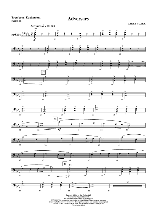 "Adversary - Trombone/Euphonium BC/Bassoon" Sheet Music by Larry Clark