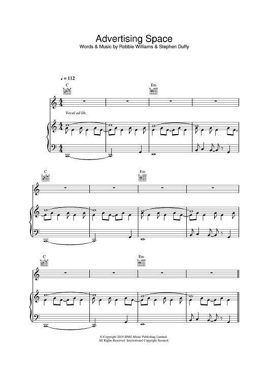 Digital Sheet Music for Advertising Space by Robbie Williams, Stephen Duffy scored for Piano/Vocal/Chords; id:387492