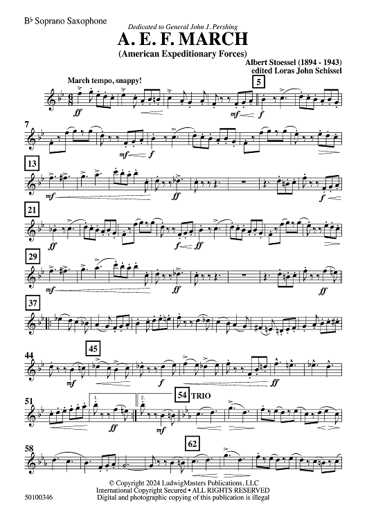 "AEF March - Bb Soprano Sax" Sheet Music by Albert Stoessel