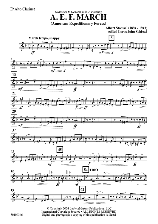 Digital Sheet Music for AEF March - Eb Alto Clarinet by Albert Stoessel, Loras John Schissel scored for Concert Band; id:504985