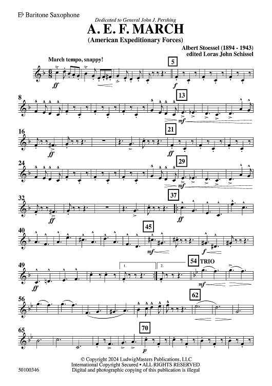 Digital Sheet Music for AEF March - Eb Baritone Sax by Albert Stoessel, Loras John Schissel scored for Concert Band; id:504990