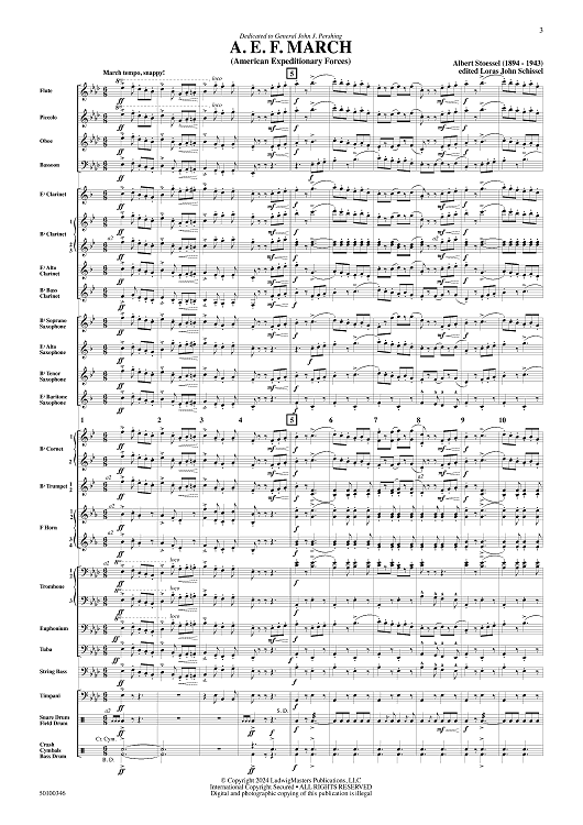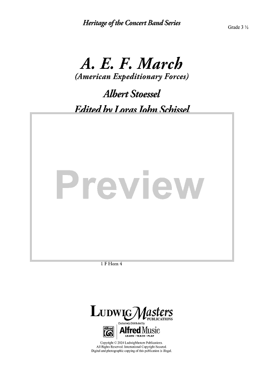Digital Sheet Music for AEF March - Full Score by Albert Stoessel, Loras John Schissel scored for Concert Band; id:504976