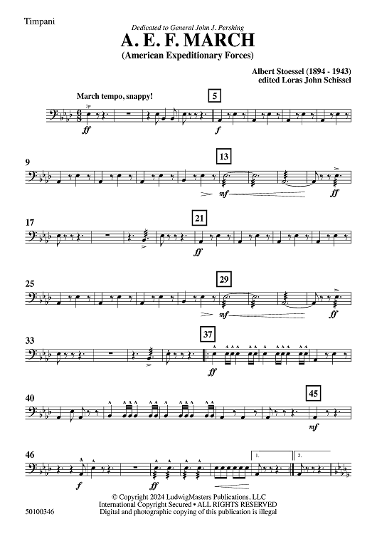 Digital Sheet Music for AEF March - Timpani by Albert Stoessel, Loras John Schissel scored for Concert Band; id:505006