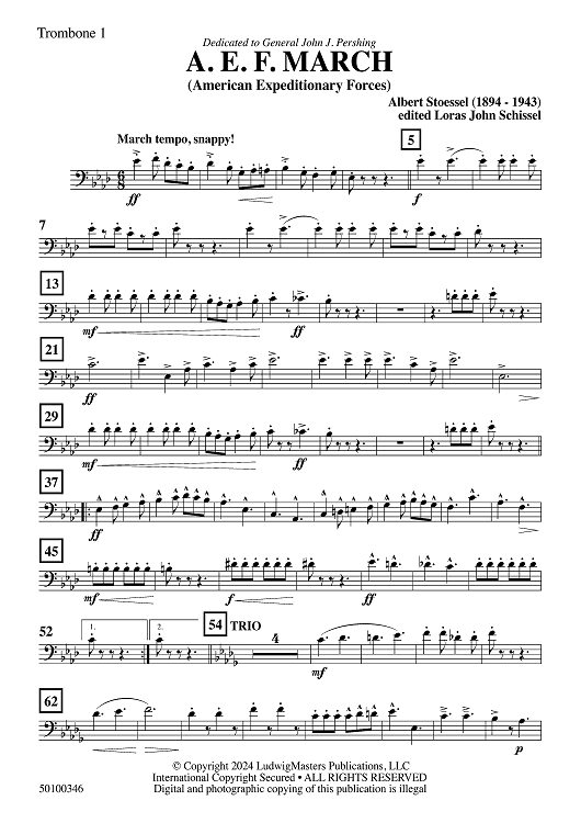 "AEF March - Trombone 1" Sheet Music by Albert Stoessel