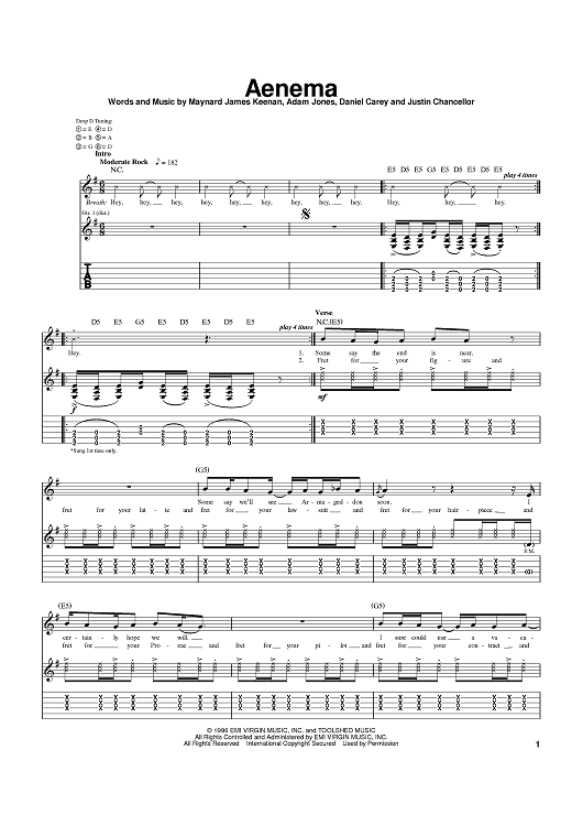 Digital Sheet Music for Aenema by Daniel Carel, Justin Chancellor, Adam Jones, Tool scored for Guitar Tab; id:367872
