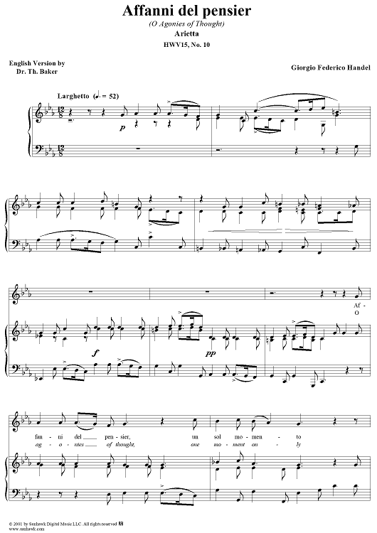 "Affanni del pensier (O Agonies of Thought)" Sheet Music by George Frideric Handel