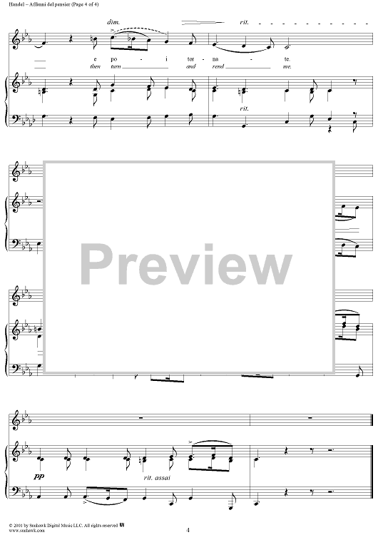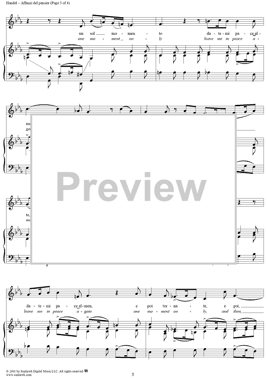 Digital Sheet Music for Affanni del pensier (O Agonies of Thought) by George Frideric Handel scored for Voice/Piano; id:266627