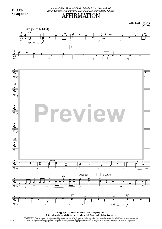Digital Sheet Music for Affirmation - Eb Alto Sax by William Owens scored for Concert Band; id:500315