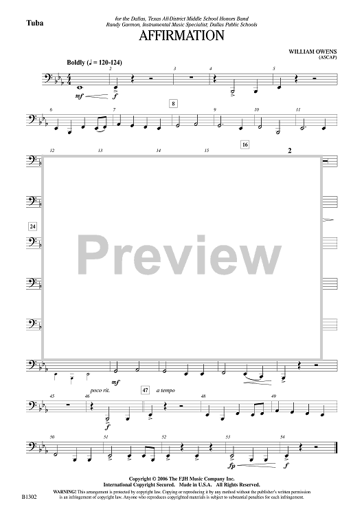 Digital Sheet Music for Affirmation - Tuba by William Owens scored for Concert Band; id:500324