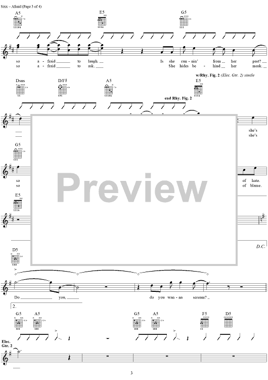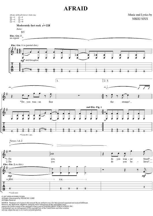 Digital Sheet Music for Afraid by Mötley Crüe, Nikki Sixx scored for Guitar Tab/Vocal; id:297758