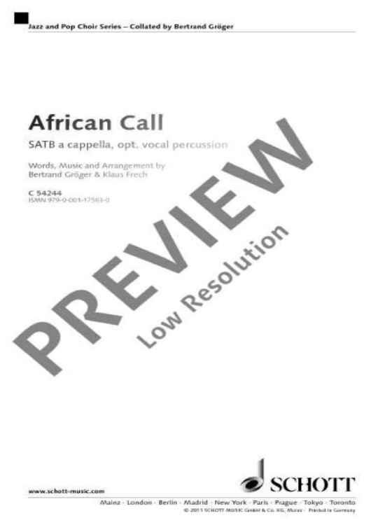 "African Call - Choral Score" Sheet Music by Bertrand Groeger