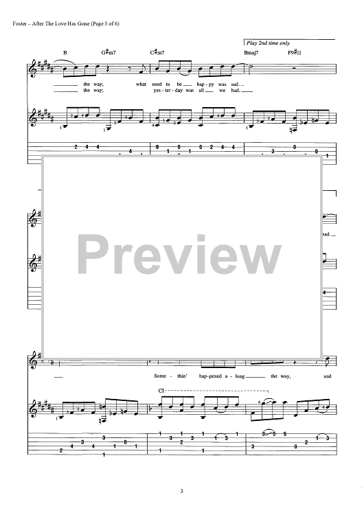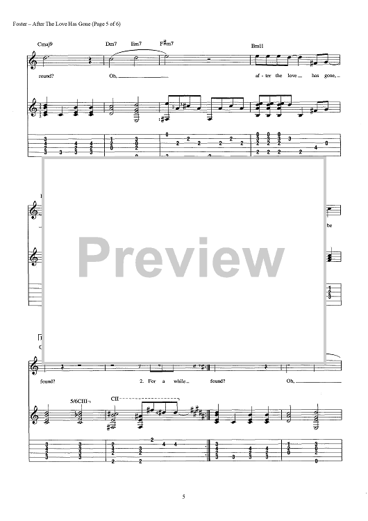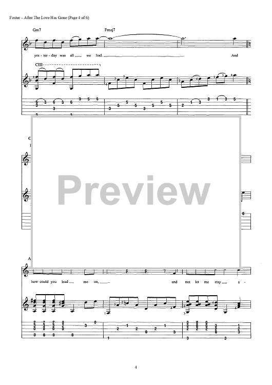 Digital Sheet Music for After the Love Has Gone by Jay Graydon, Bill Champlin, David Foster scored for Guitar Tab/Vocal/Chords; id:442857