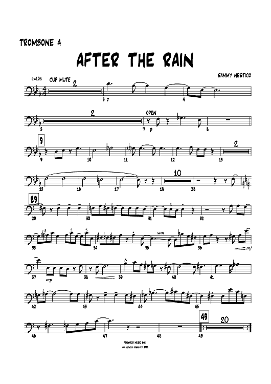 "After the Rain - Trombone 4" Sheet Music by Sammy Nestico