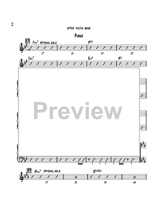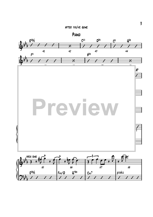 After You've Gone is very “laid-back” and easy for the first chorus. Use Guitar, Piano or your choice of instruments for the jazz sections. Drums should build up a bar before the ensemble at 61. The ensemble should be BIG!! From 75 to the end should be very light for a large contrast.